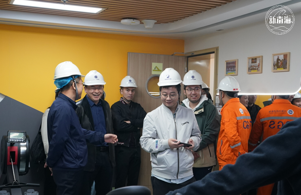 在广州海洋地质调查局专家的介绍下,南海局机关干部职工逐一参观了“梦想”号的驾驶台、舯部甲板、实验室和生活区等。体量巨大的钻探装备,高效的传输系统和先进的实验室,无不让大家感到惊叹和振奋。